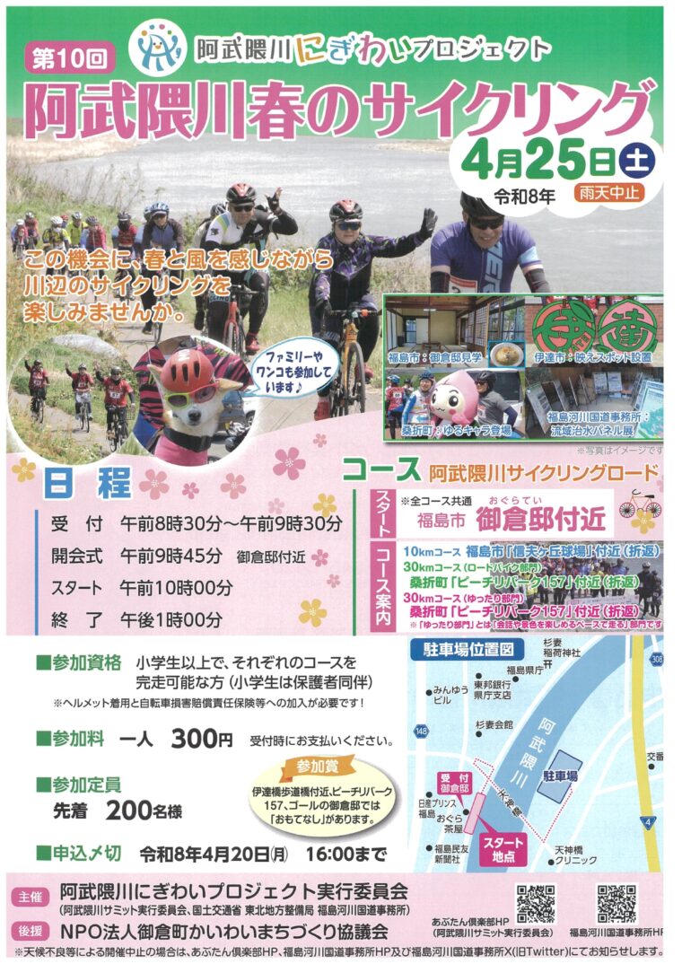 第10回 阿武隈川春のサイクリング※4/20応募締切
