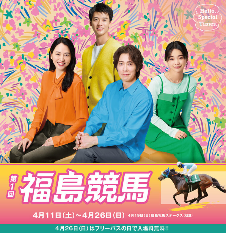 紺野彩夏さん来場やお馬さんの起きあがり小法師ワークショップ、武豊騎手デビュー40年展示、名探偵プリキュア!ショー・超宇宙刑事ギャバン インフィニティショー、春のグルメフェス2026など福島競馬開催期間中、多彩な催し物が開催されます。