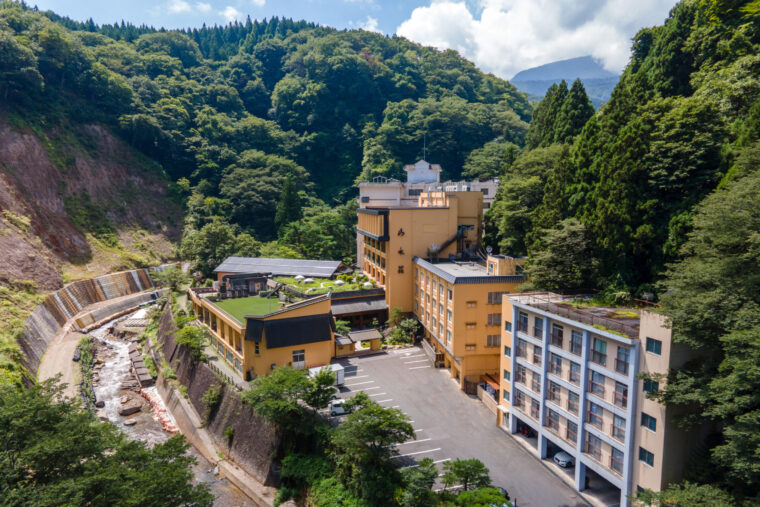 土湯温泉に佇む「水織音の宿 山水荘」は、豊かな自然と多彩な温泉施設で訪れる人々を魅了します。敷地内には約千坪の日本庭園が広がり、四季折々の美しい景観を楽しめます。