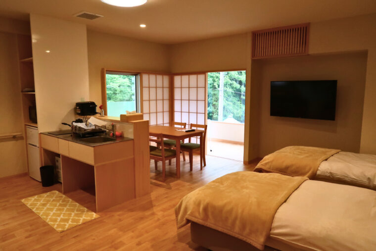 土湯温泉に位置する「YUMORI ONSEN HOSTEL」は、伝統ある温泉文化と、現代的なホステルの快適さを融合させた新しいスタイルの宿泊施設です。段差を解消したバリアフリー設計となっており、車椅子をご利用の方も安心して滞在いただけます。
