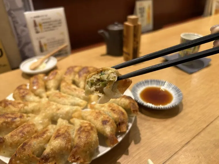 日本酒にも合うサッパリ系円盤餃子とガッツリ手打ち焼き餃子が自慢