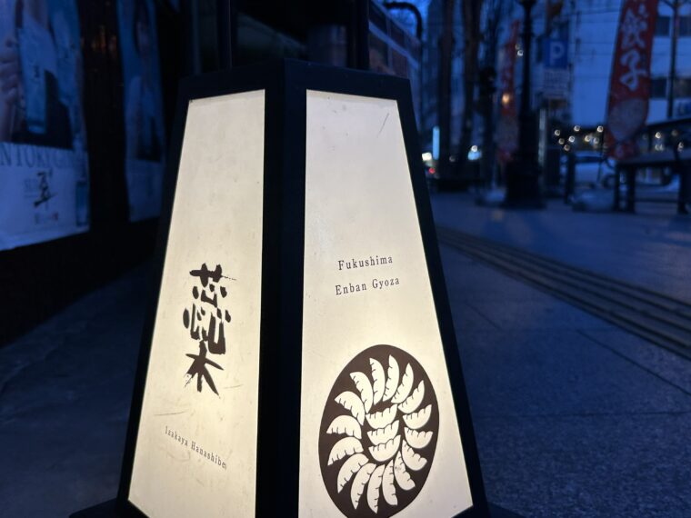 福島駅東口から徒歩7分。商店街パセオ通りの中ほどに、「はなしべ」と書かれた白い暖簾があります。くぐった先の階段を昇ると、2階が入口。