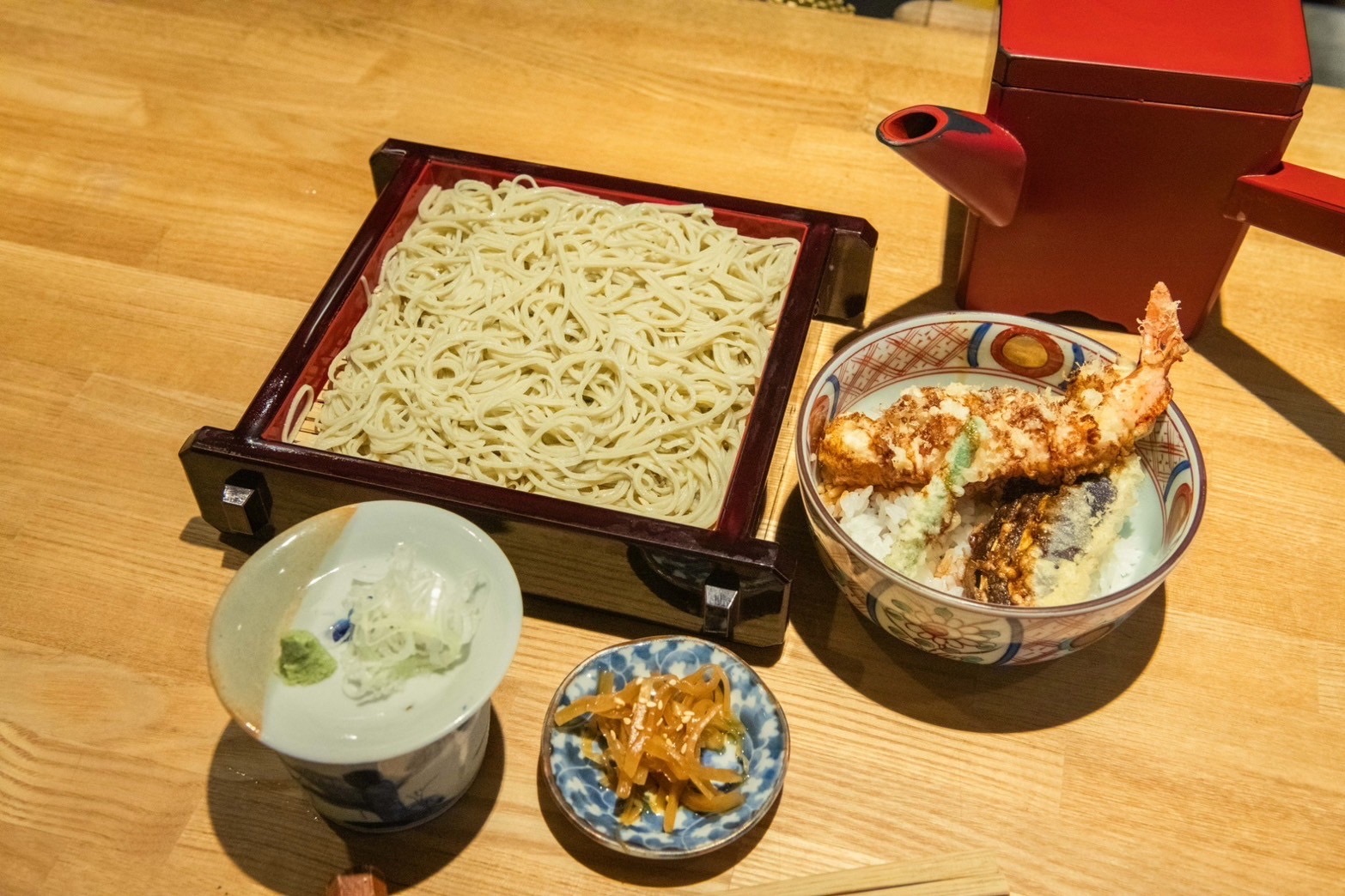 こだわりは、厳選した蕎麦の実を石臼で丁寧に挽いた自家製粉の蕎麦。蕎麦粉十割に対しつなぎを一割加える「外一(そといち)」という比率で打つ蕎麦は、豊かな香りと心地よい喉越しを両立させています。