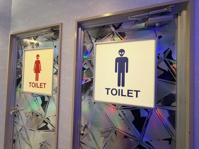 施設で見学を楽しんだ後は、トイレでも宇宙人との不思議なコンタクトを楽しめるはず。細部までこだわり抜かれたデザインは必見です。