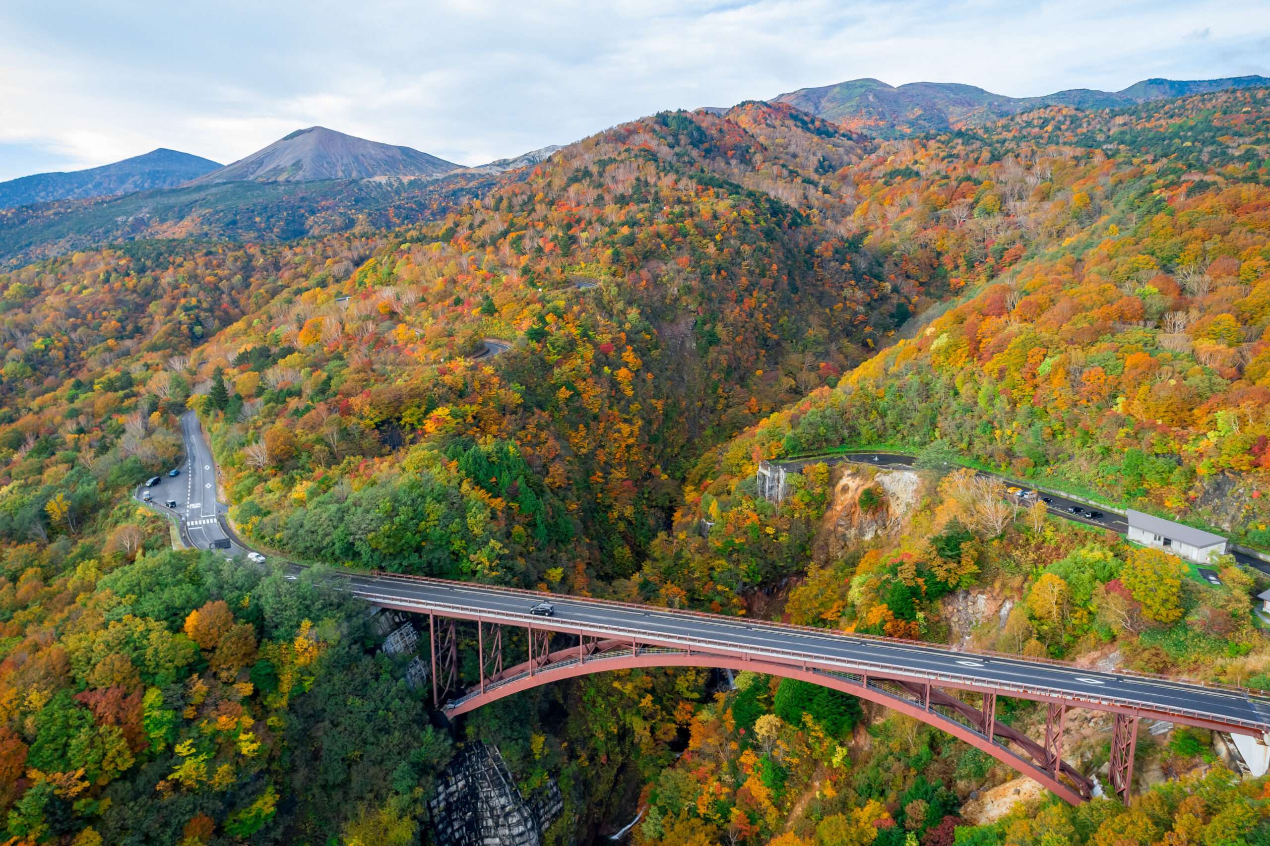 福島市の高湯温泉と土湯峠を結ぶ「磐梯吾妻スカイライン」は、全長約29kmの山岳観光道路で、その雄大な山の景観は多くの人を魅了してやみません。「日本の道100選」にも選ばれ、全国的に知られる紅葉スポットとなっています。