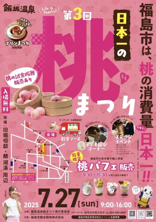 飯坂温泉で開催された「飯坂温泉 日本一の桃まつり」のチラシ