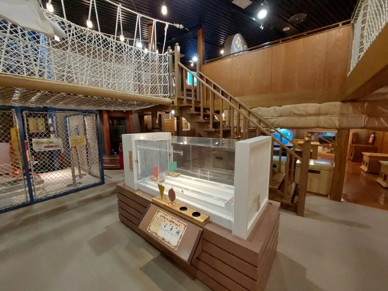 常設展示室「ドリームシップ号」では、子どもたちが夢中になる仕掛けがいっぱいの巨大迷路をはじめ、体験型の展示が多数あります。バーチャル航海や竜巻発生装置、無重力体験装置など、ぜひ親子で体験してみて。