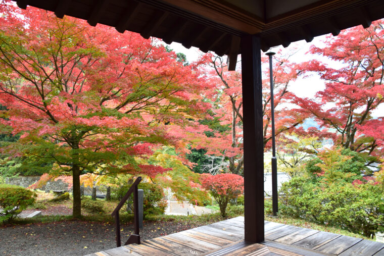最大の魅力は「多宝塔」の脇にある庵からの景色。天気の良い日には、磨かれた床板に紅葉が鏡のように映り込む「床もみじ」を見ることができ、幻想的な撮影スポットとして人気です。