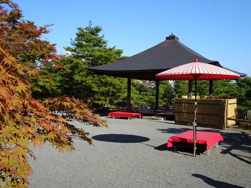 また、庭園の中には茶亭があり、美しい紅葉を眺めながら抹茶や甘味を楽しみ、ゆったりとした時間を過ごすことができるのも大きな魅力です。