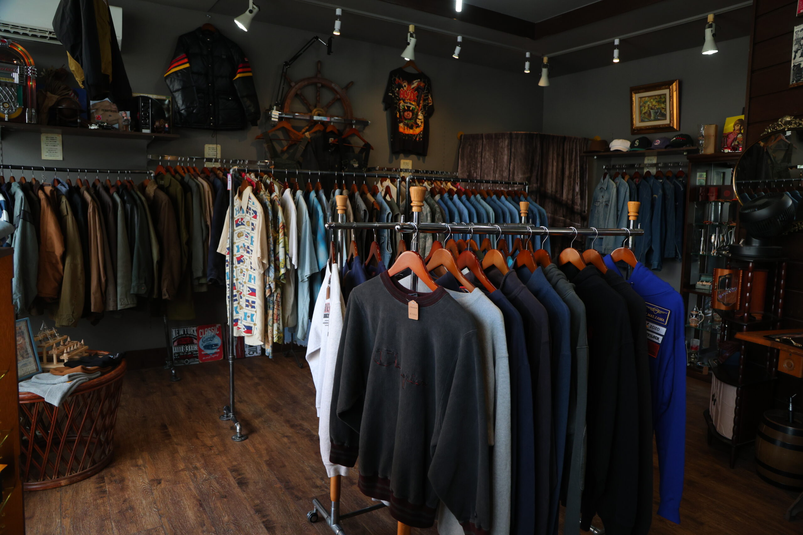 福島駅東口エリアは古着屋が多く、オーナーやスタッフのMOEさんは、近くの古着店で買い物をするなど、古着屋同士のつながりも大事にしています。
