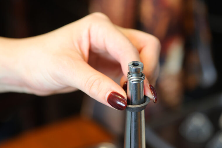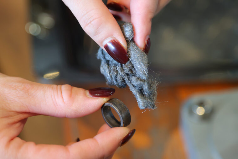 リングを少しずつ広げて指のサイズに合わせたら、整形したリングを磨いて、好みの色味に近づけていきます。