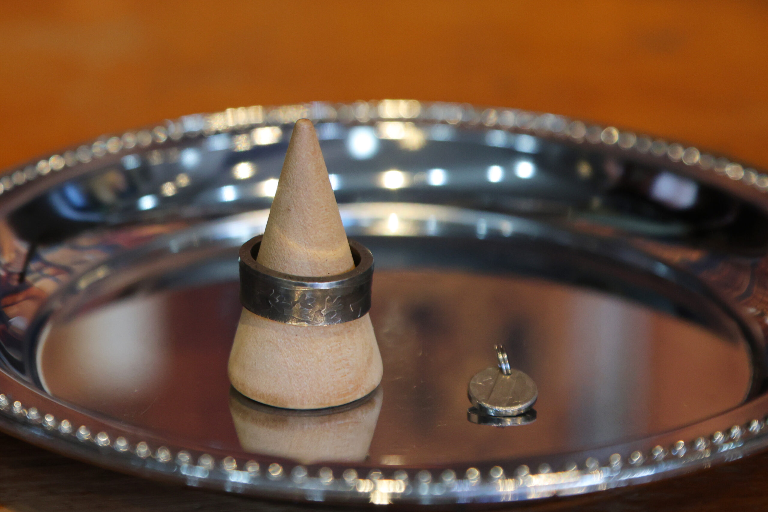専用の器具を使えば女性でも簡単にコインに穴を開けられるので安心。穴を開けたコインを曲げたり、磨いたりして、だんだんと指輪の形に整えていきます。同じコインでも、穴を開ける大きさや合わせる指のサイズなどで全然違うリングに。