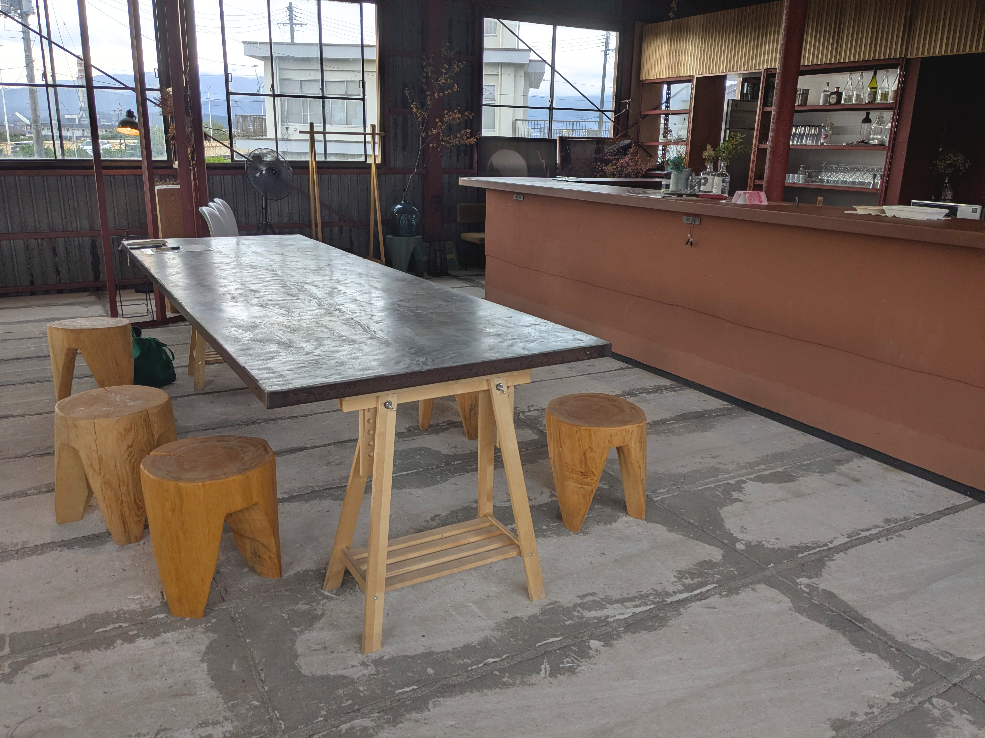 高い天井と広々としたフロアの開放的な空間に、個性的なテーブルとイスたちが5セットほど並びます。どの席に座れるかな? というワクワク感を胸に訪れてみるのも、楽しいかもしれません。
