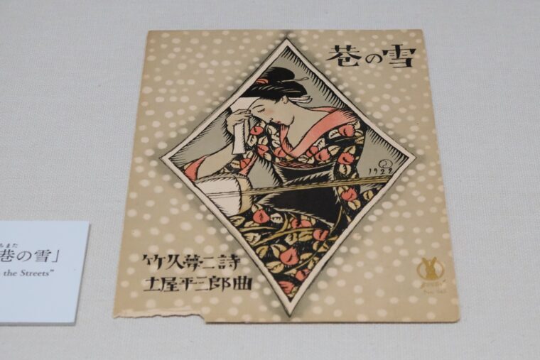 セノオ楽譜「巷の雪」表紙画。竹久夢二詩と書いてある