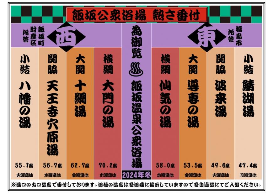 - 飯坂温泉共同浴場:地元民も愛する8つの共同浴場。大門の湯や鯖湖湯でロケが行われた。