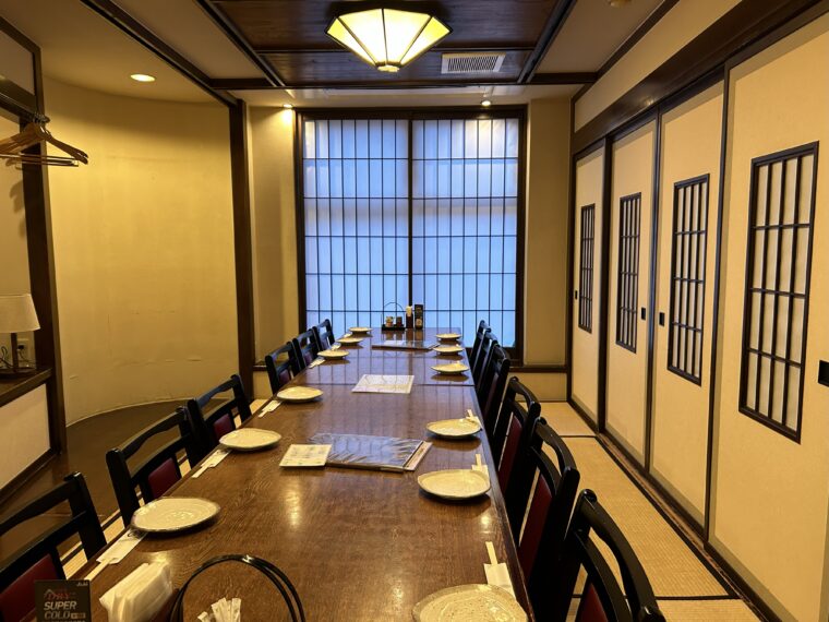 宴会は最大50名、全館貸し切りなら130名まで対応。また、窓から国道13号「置賜交差点」を見下ろせる奥の個室は、8月の福島わらじまつりの際は特等席になるとか。