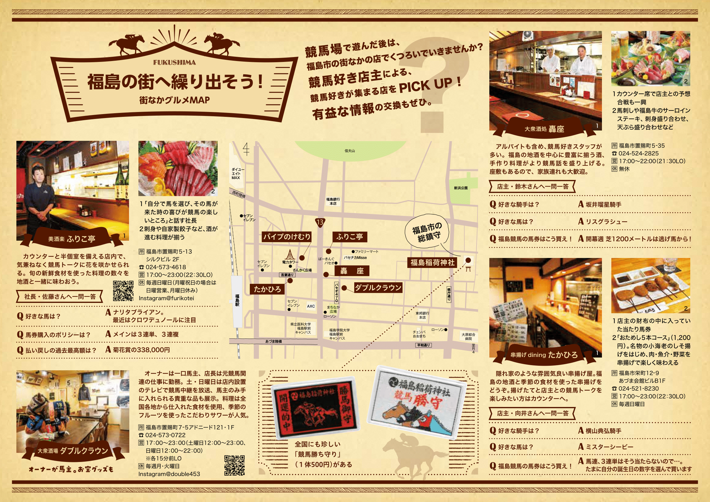福島競馬場で遊んだ後は、福島市の街なかの店でくつろいでいきませんか? 競馬好き店主による、競馬好きが集まる店が、福島の街なかにはたくさんあります。