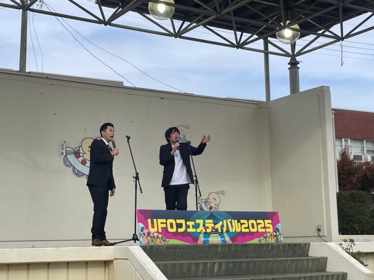 フェスティバル毎年恒例のお笑いライブでは、吉本興業のレイザーラモンHGとフルーツポンチが登場。UFOとお笑いという異色のコラボレーションが実現したステージに、宇宙人も地球人も腹を抱えて笑いました。