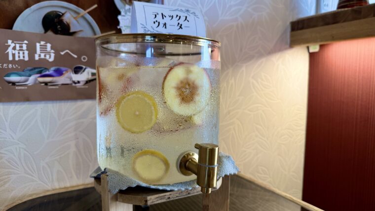 その上にのるのが、福島市産りんごのコンポート。果肉の甘酸っぱさが濃厚なチーズの風味を引き立て、冬ならではの深みのある甘さに。温泉でぽかぽかになった身体に、ご褒美のようにスッと染みていく一杯です。