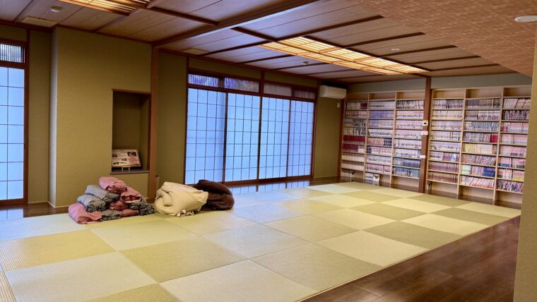 また、18畳の琉球畳が敷かれた無料の休憩所には、寝転びながらうたた寝できるスペースに、約3,000冊のマンガ本や雑誌がずらり。温泉を出たあとにも、好きなスタイルで過ごせる環境が整っています。