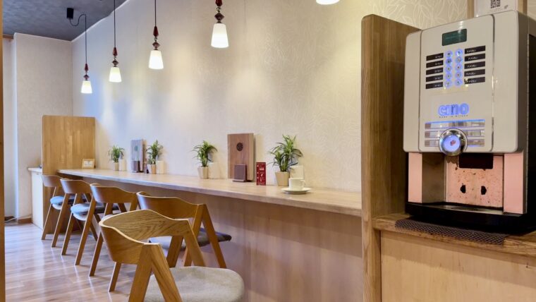 館内は木の質感を大切にした「和モダン」な空間で、時間がゆっくり流れるような心地よさがあります。“年中フリータイム制”で、時間制限なく滞在できるのも嬉しいポイント。読書や作業ができる休憩スペースには、無料のセルフ挽きたてコーヒーとフリーWi-Fiもあります。
