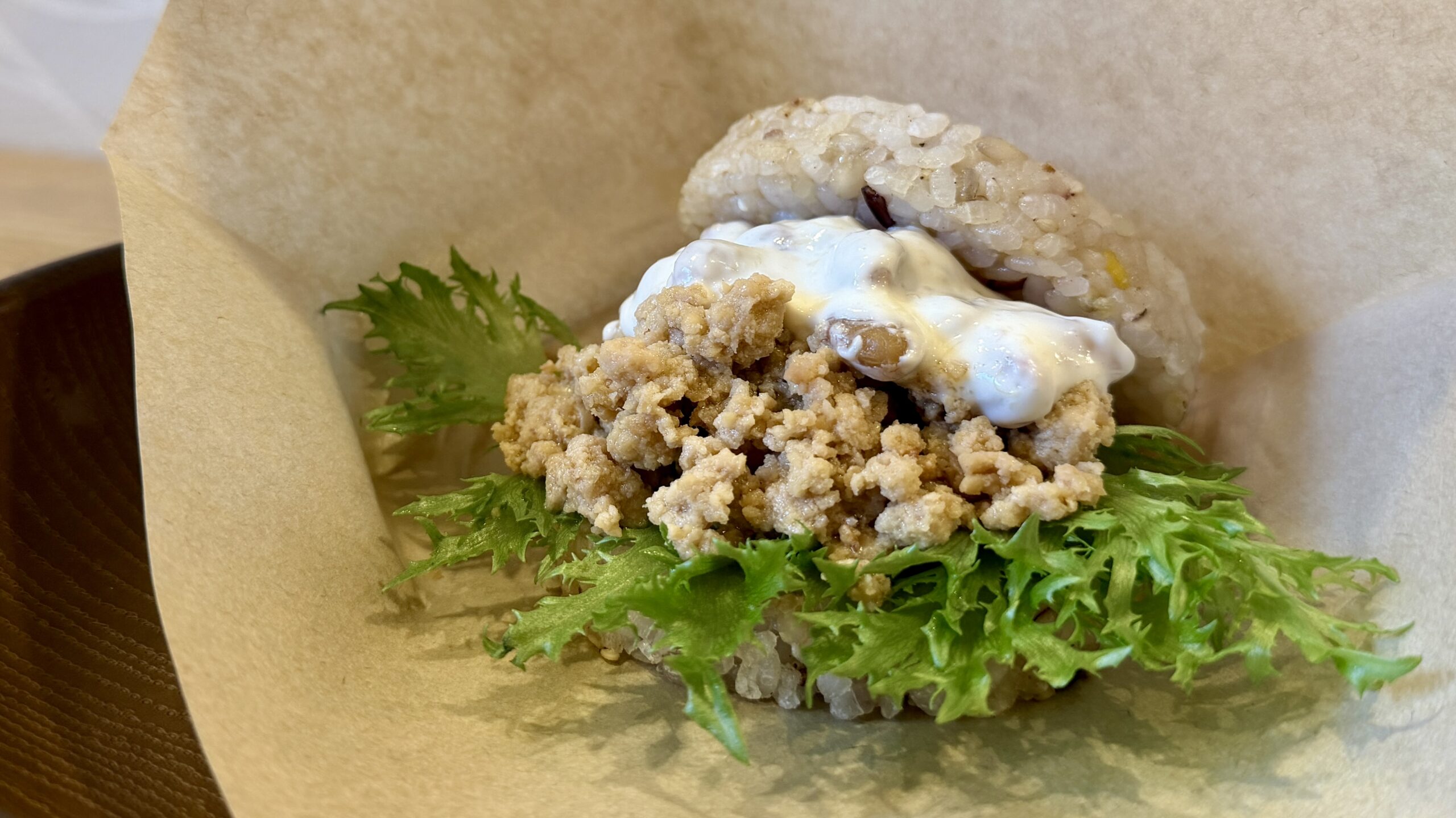 こちらは発酵食品を使った“温泉納豆”の和バーガー「発酵するシャモの納豆クリーム添え」。「ふくしま納豆料理コンテスト2023」でグランプリを受賞した実績も! 和サンドは全品900円(税込)