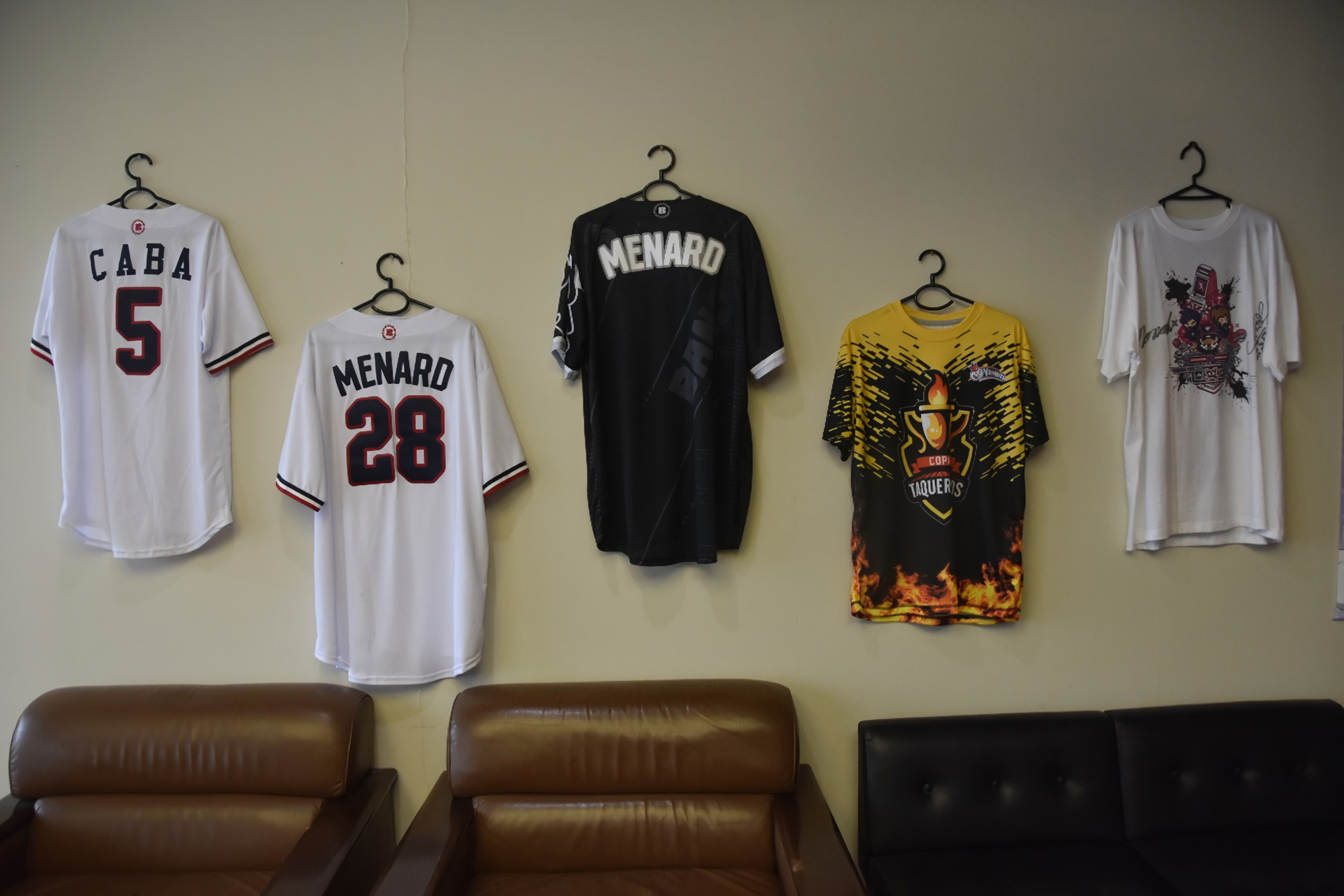 フロアには選手が世界中の強豪選手と交換したTシャツの一部が記念に飾られていた
