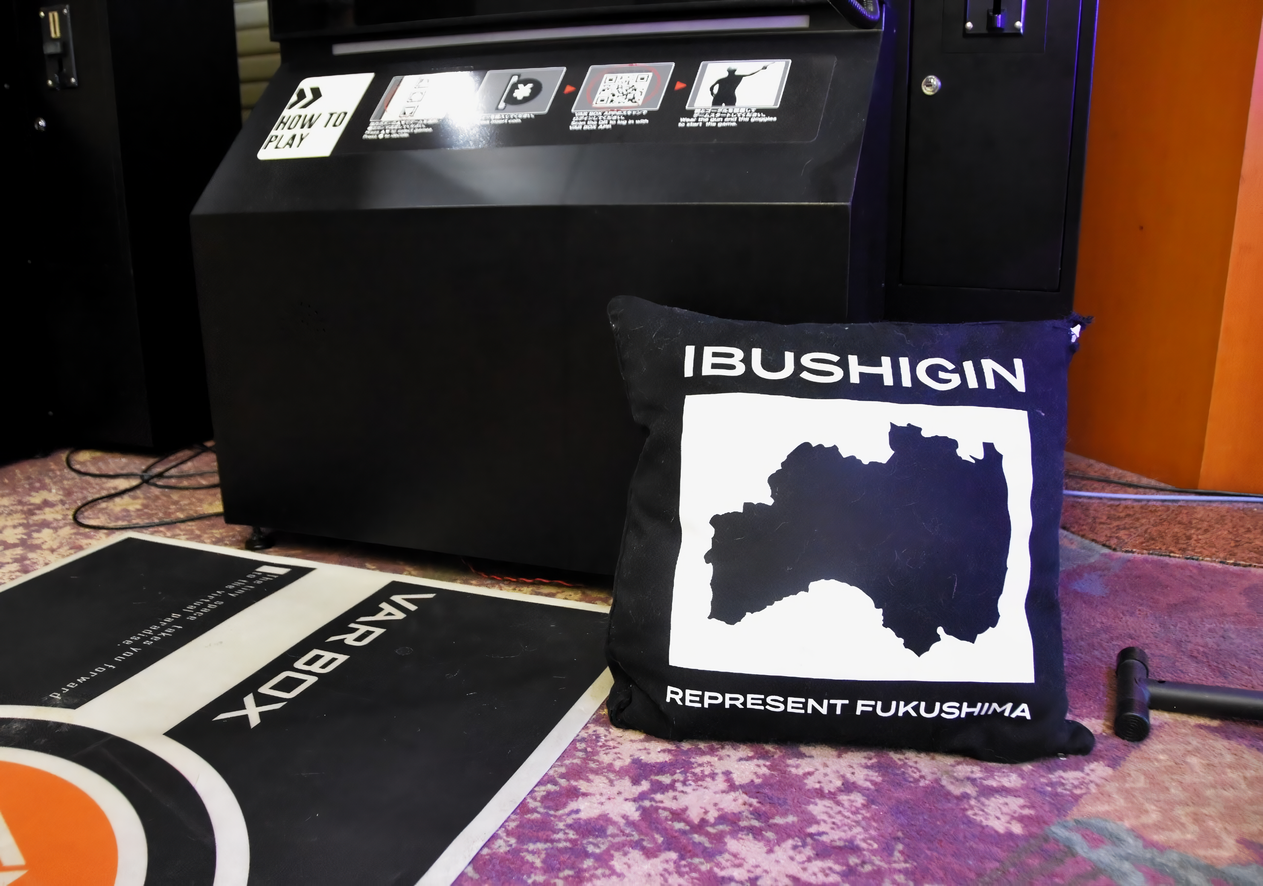 フロアに飾られたオリジナルクッション。福島愛があふれている