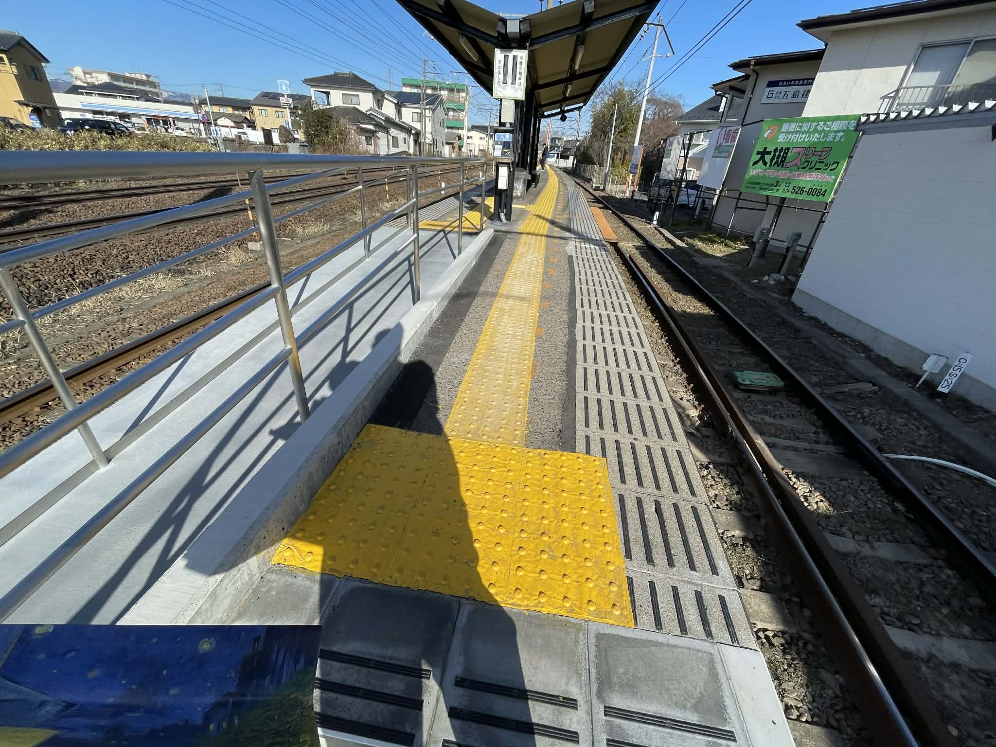 バリアフリー化工事により、ホームには真新しい点字ブロックが敷かれ、より安全に移動できるようになりました。