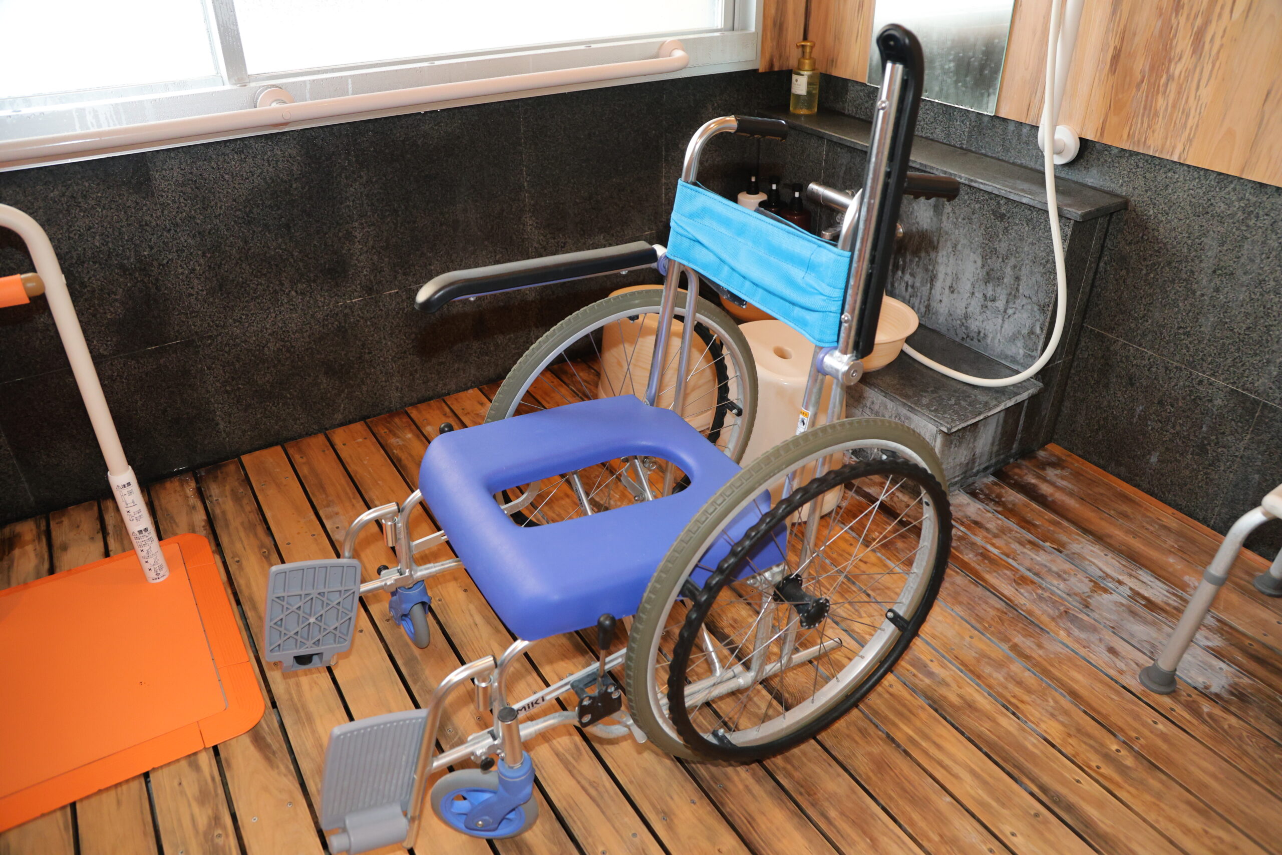 YUMORIでは、足が不自由な方も安心して入浴できるよう、浴室専用の車イス「シャワーキャリー」の無料貸し出しがあります。入浴サポートに必要な福祉用具は、入浴サポートスタッフがお客様の身体状況に合わせて用意します。