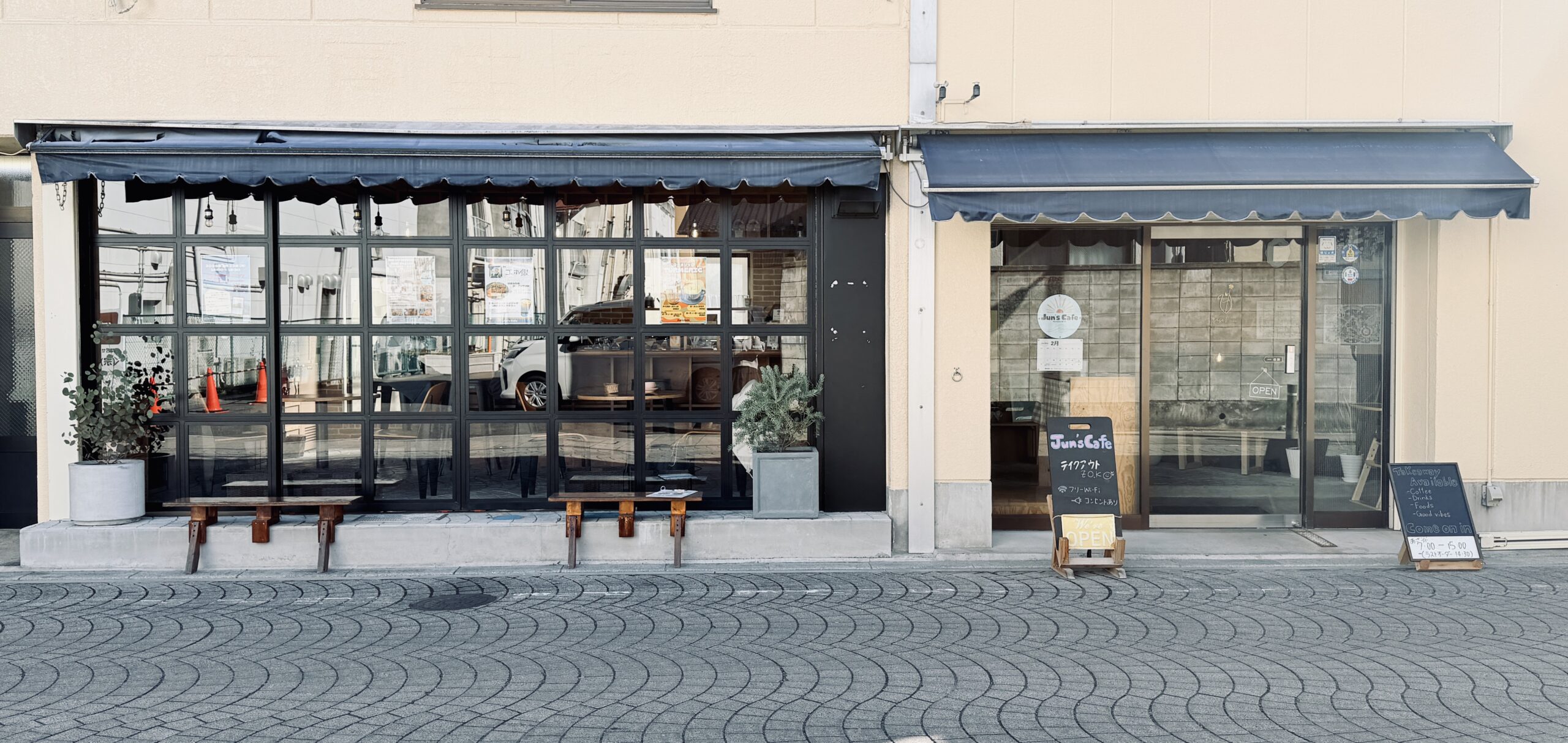 Jun’s Cafe外観/石畳の先に佇む温かな雰囲気