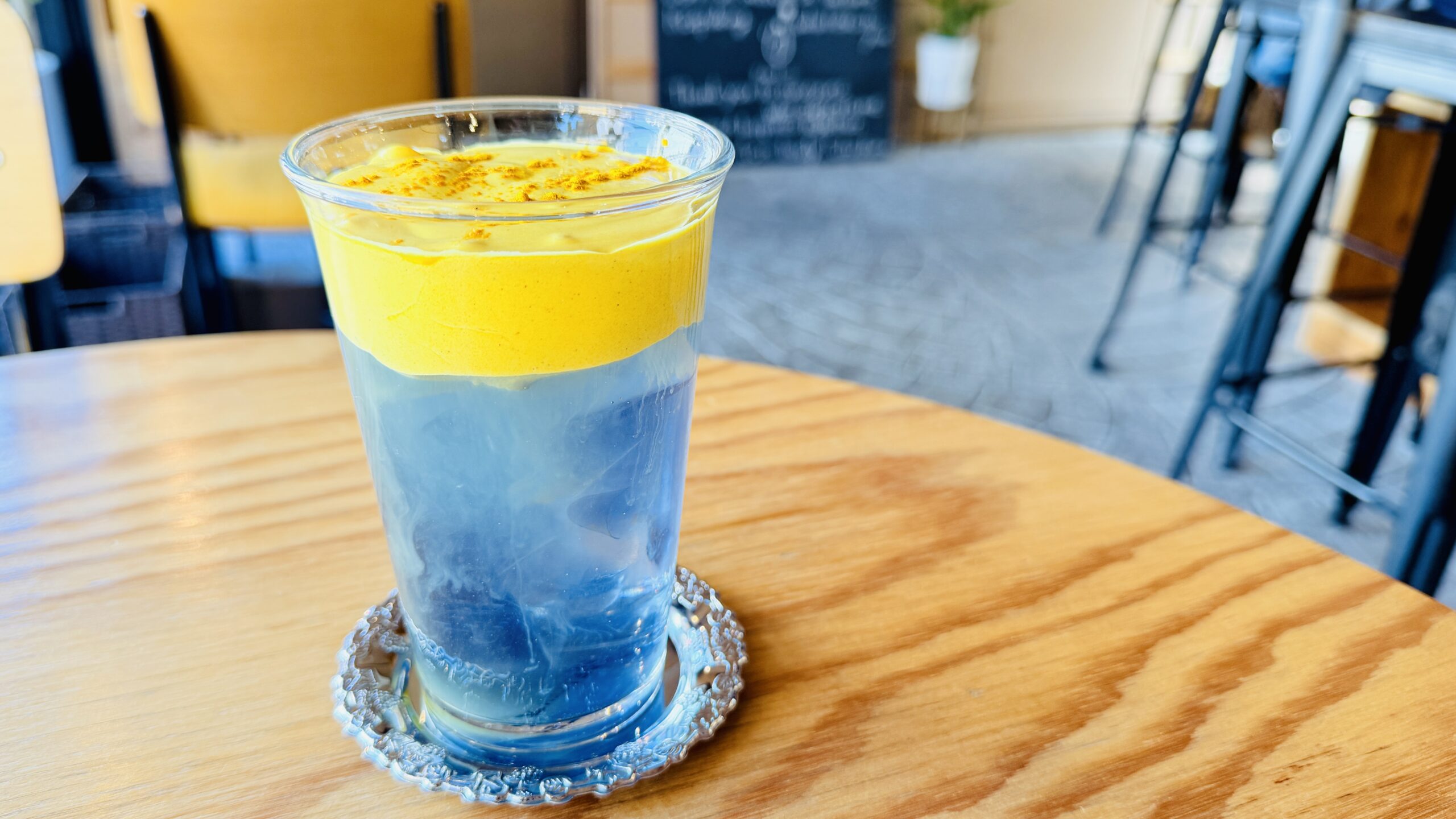 「ターメリック=カレー?」と身構えてしまう方もいるかもしれませんが、心配いりません。スパイス独特の香りが強すぎることもなく、実際に飲んでみると驚くほどまろやか。特に上の黄色いフォーム(泡)の部分には、絶妙な甘さと口当たりの良さに「あ、これ好き!」と一瞬でファンになってしまいました。