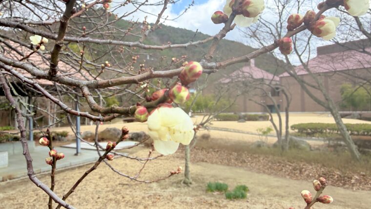 木々の枝先には、今か今かと膨らんでいる蕾があったり、中にはもう可愛らしい花を咲かせている枝もあったりと、確かな春の息吹を感じることができます。冬から春へと移り変わるこの時期ならではの空の広さや、独特の柔らかな光もまたこの時期だけの魅力です。