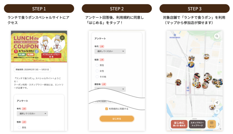 とはいえ、せっかくなら参加しないともったいないのが、ランチで食うポンのもう一つの楽しみであるデジタルスタンプラリー「ランチdeラリー」です!