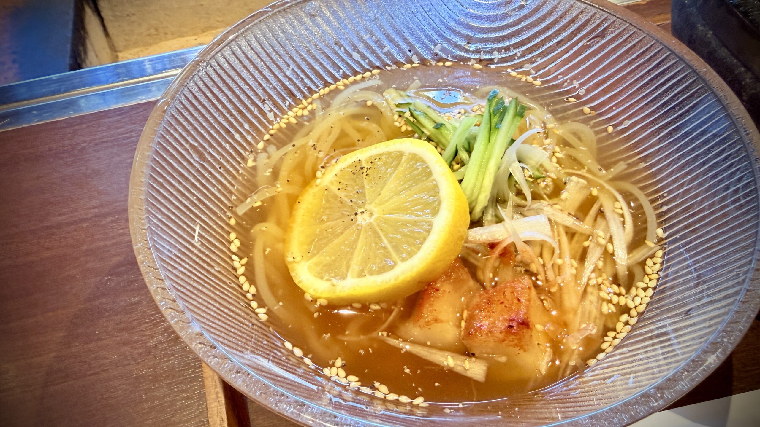 そして、熱くなった口の中を優しくリセットしてくれるのが、今回のランチで食うポンのために作られたという「レモン冷麺」です。