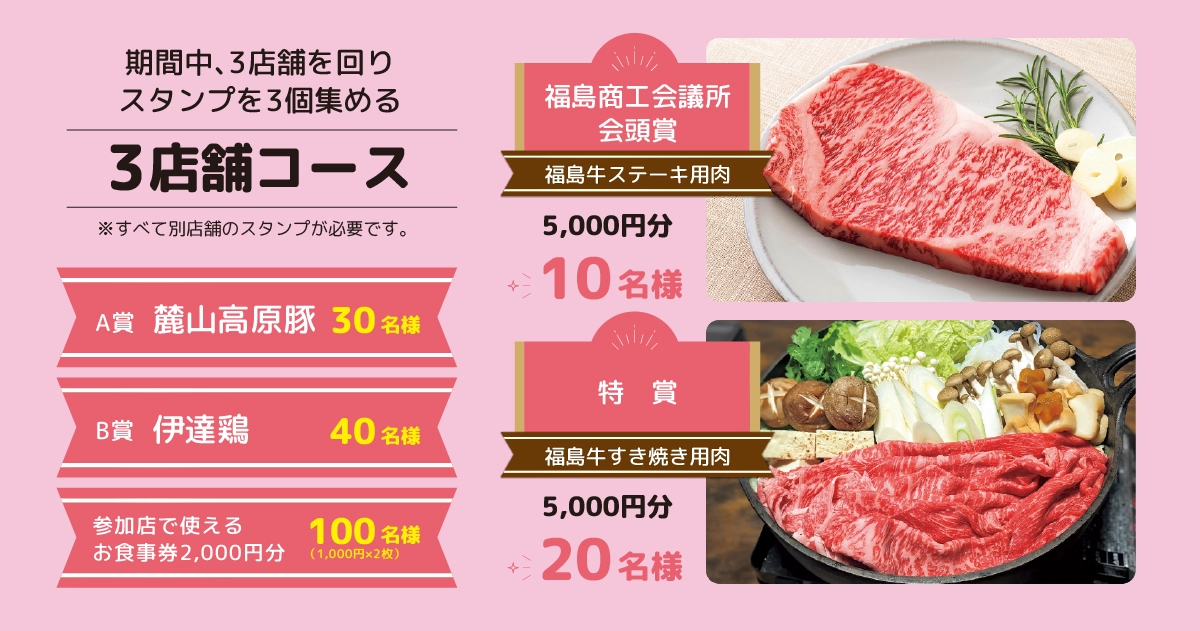 福島の特産品が当たる「スタンプ3店舗コース」と「特別コース」!