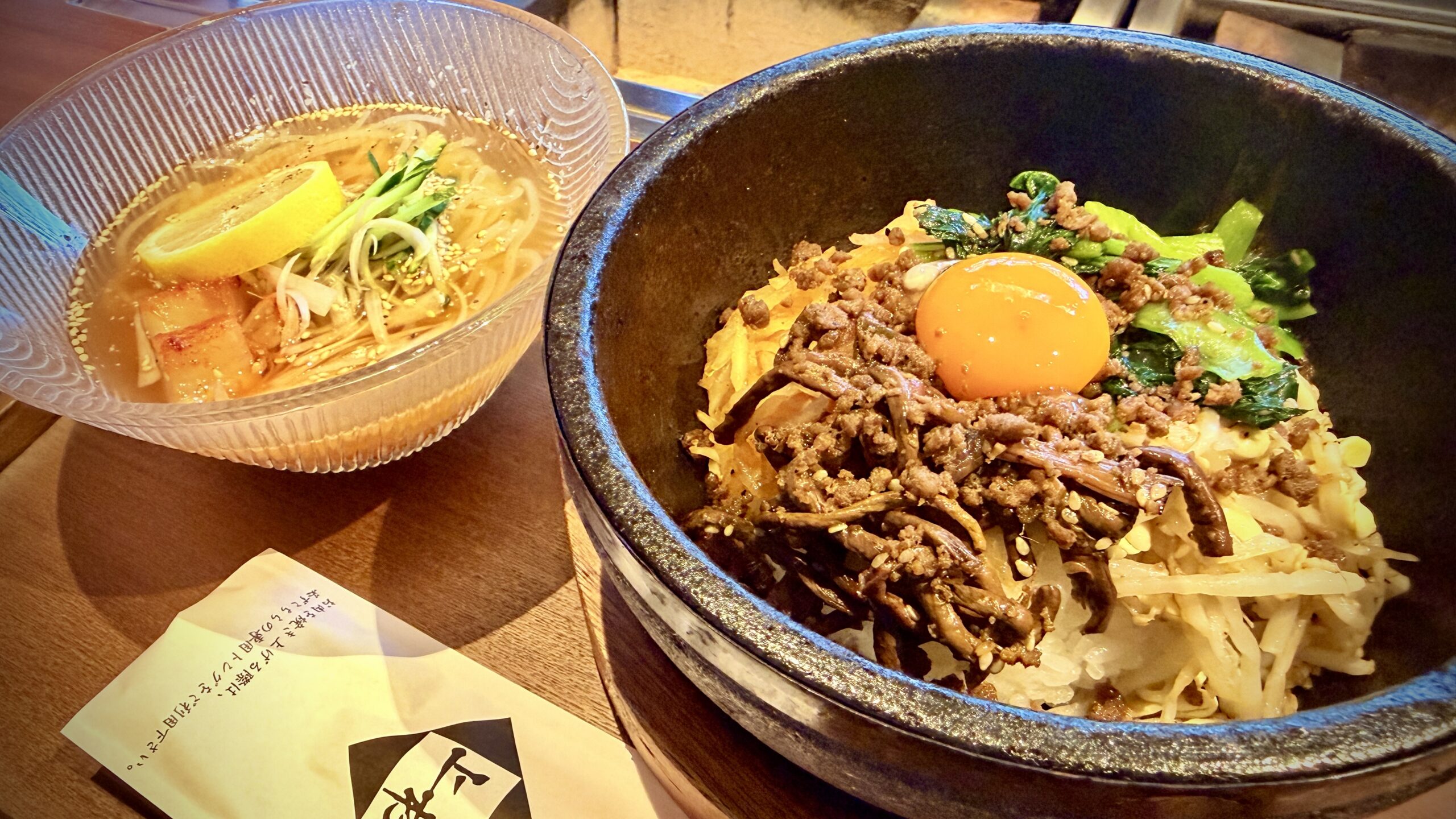 「熱々で香ばしいビビンバ」と「冷たくてさっぱりした冷麺」は相性抜群で、最後まで飽きずにペロリといただける贅沢な組み合わせでした!