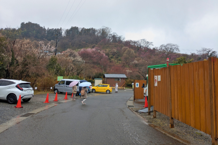取材日は交通規制の始まる直前の平日だったため、駐車場には一般車が止まっています。右手には仮設トイレが設置され、いよいよシーズンスタートという雰囲気。