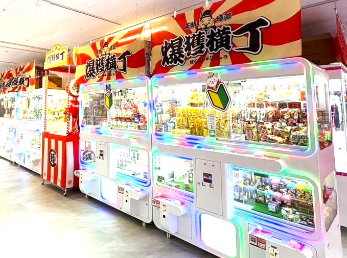 地域最大級のクレーン口数で、獲れる喜びを追求した「爆獲横丁」や、オリジナル10本アームのクレーンゲーム機「十手観音」は、激推しコーナーです。また、10円で遊べる「拾円市場」は、お子様とのクレーンゲーム遊びに最適。